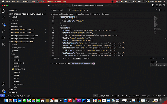 enatega-multivendor-web, open it in the integrated terminal by:- Right-clicking on the