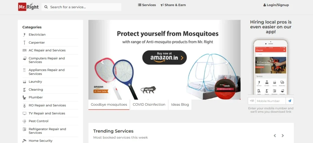 Mr. Right is the most trusted platform for home services. This home service app provides 300+ services. This platform offers various services with reliable and verified professionals. The best feature about Mr.Right is upfront pricing and hassle-free payment options.